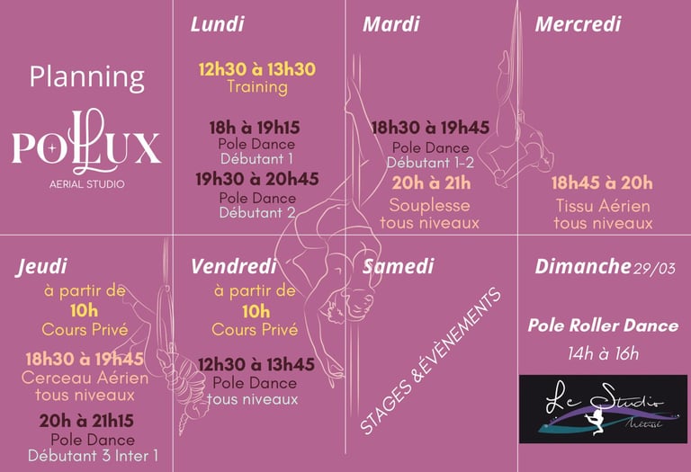 Il évolue chaque semaine, en fonction des réservations de cours.